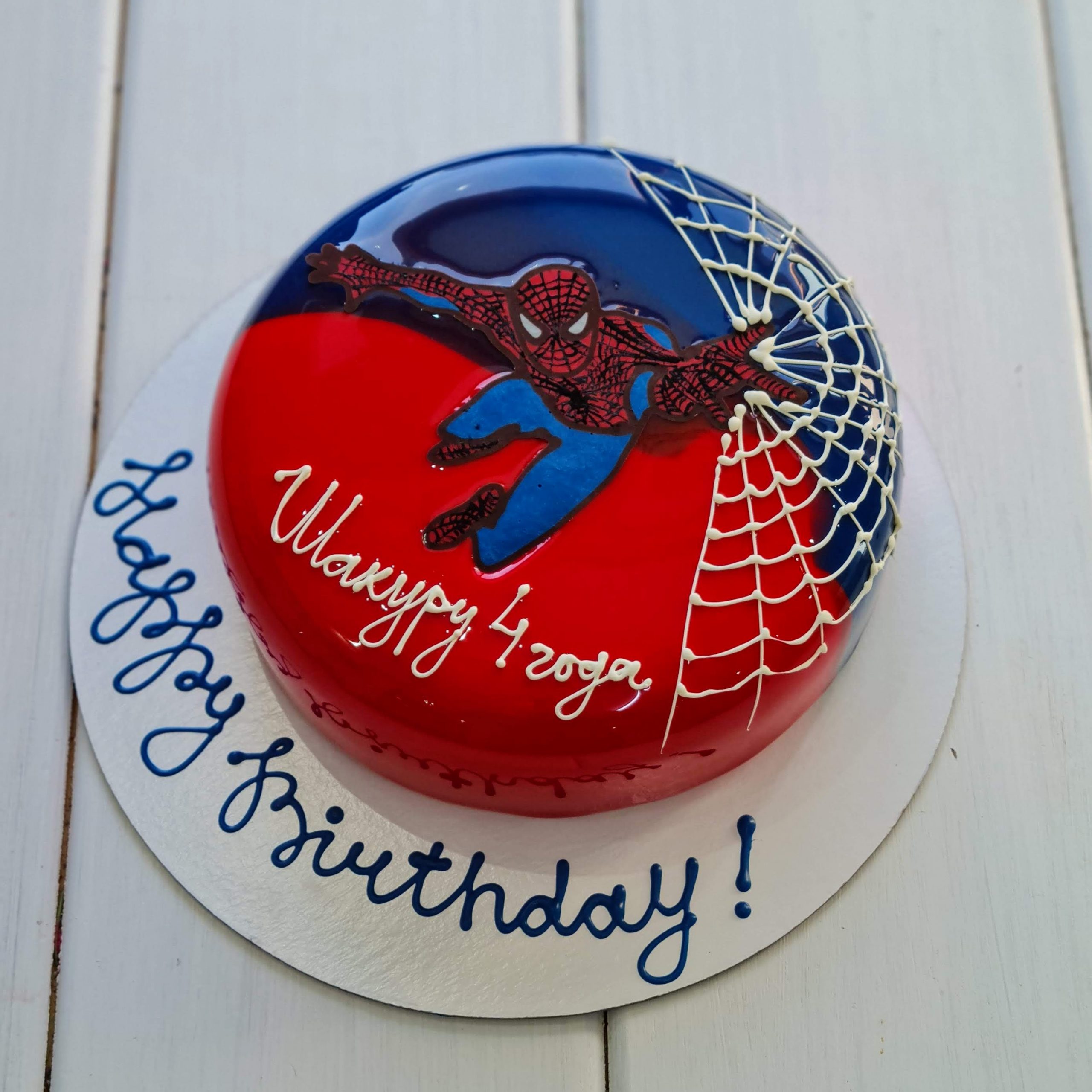 Эффектный торт с мраморным покрытием с надписью и шоколадными цифрами