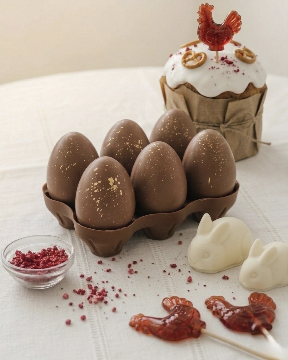 Пасхальные шоколадные яйца в шоколадном лотке с пирожным картошка внутри — настоящий праздник вкуса и аромата!