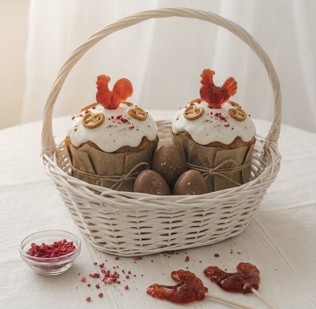 Оформление. Если берёте в подарок — важно, как кулич выглядит. Красивая подача, фирменная упаковка, пасхальная корзина с шоколадными яйцами — это уже полноценный подарок, а не просто выпечка.