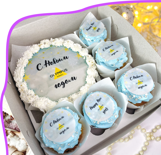 Мы предлагаем оригинальные подарки коллегам и партнерам на Новый год. Можно заказать как большие торты с логотипом компании так и индивидуальные десерты в подарочной упаковке.